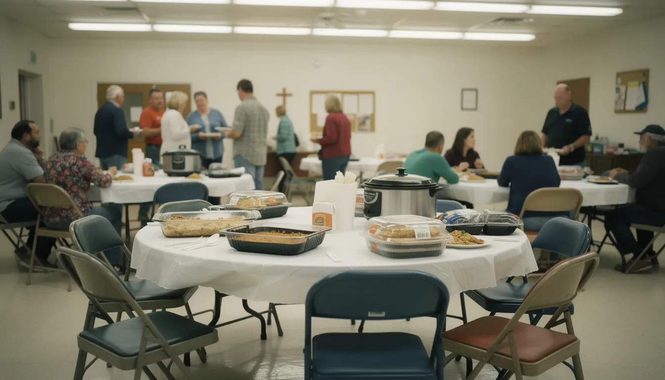 Paulson arrived at 6:08 p.m., within the acceptable window, carrying a store-bought pie he had remembered to purchase before entering the parking lot. Fellowship coordinator Janet Albrecht, 58, confirmed she had not planned for his presence and was forced to add a folding chair in real time.